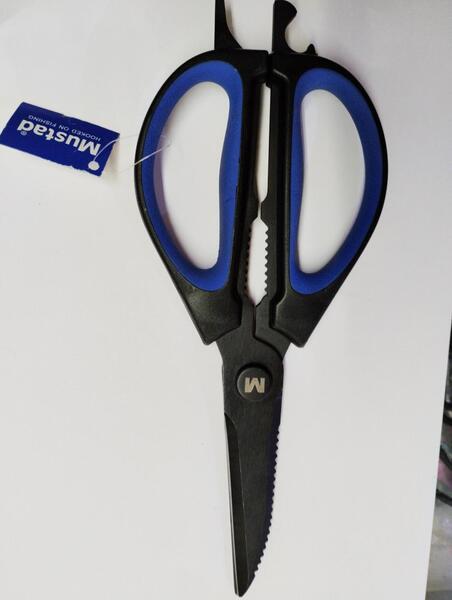 Las tijeras MUSTAD están hechas de acero inoxidable para prevenir la oxidación y la corrosión y tienen un agarre suave gracias a unos polímeros especiales hechos para una manipulacion intensiva de las tijeras . Además de cortar, estas tijeras cuentan con un abrebotellas integrado y un pelador de verduras. Para facilitar la limpieza, estas tijeras están construidas en 2 piezas que se desmontan fácilmente si lo deseas
